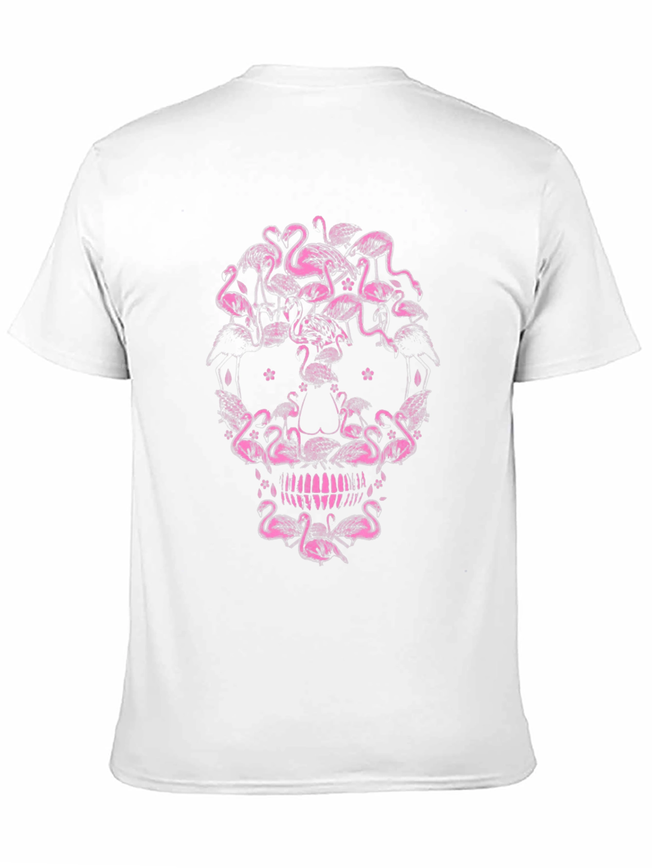 Express your unique style with this eye-catching black t-shirt. Featuring a distinctive flamingo skull design in vibrant pink, this tee is sure to turn heads. Crafted from a comfortable fabric, it's perfect for everyday wear. Stand out from the crowd with this edgy and stylish graphic tee. Ideal for casual outings, concerts, or adding a touch of personality to your wardrobe. Makes a great gift for those who love flamingos, skulls, or unique fashion. Get yours today and make a statement!