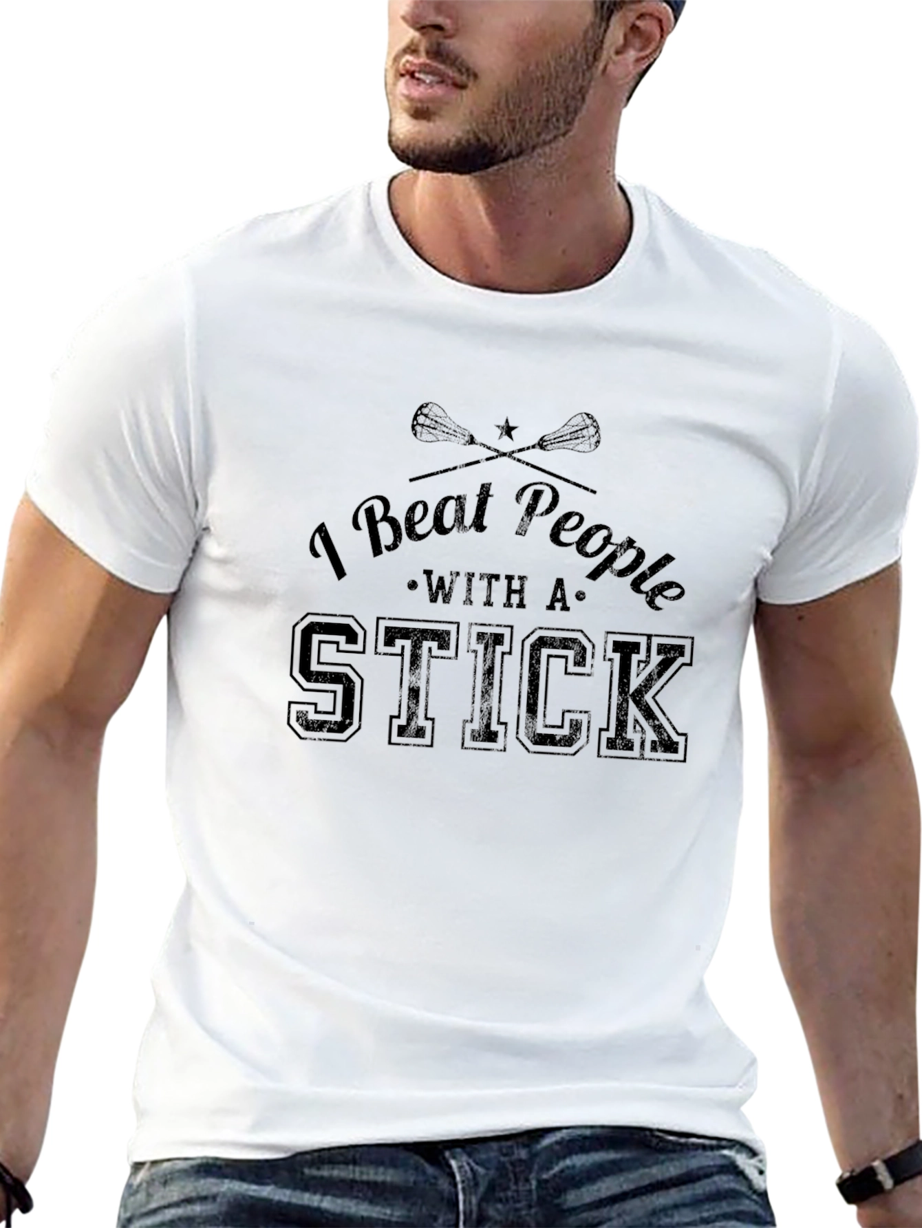 Show off your love for lacrosse with this eye-catching black t-shirt. This comfortable tee features the phrase "I Beat People with a Stick" alongside an illustration of lacrosse sticks, making it a great conversation starter and a must-have for lacrosse enthusiasts. Made from soft, breathable fabric, it's perfect for casual wear, workouts, or game day. The classic fit and durable construction ensure long-lasting comfort and style. Whether you're a player, coach, or fan, this t-shirt lets you express your passion for lacrosse with a touch of humor. Get yours today and let everyone know you're serious about your sport!