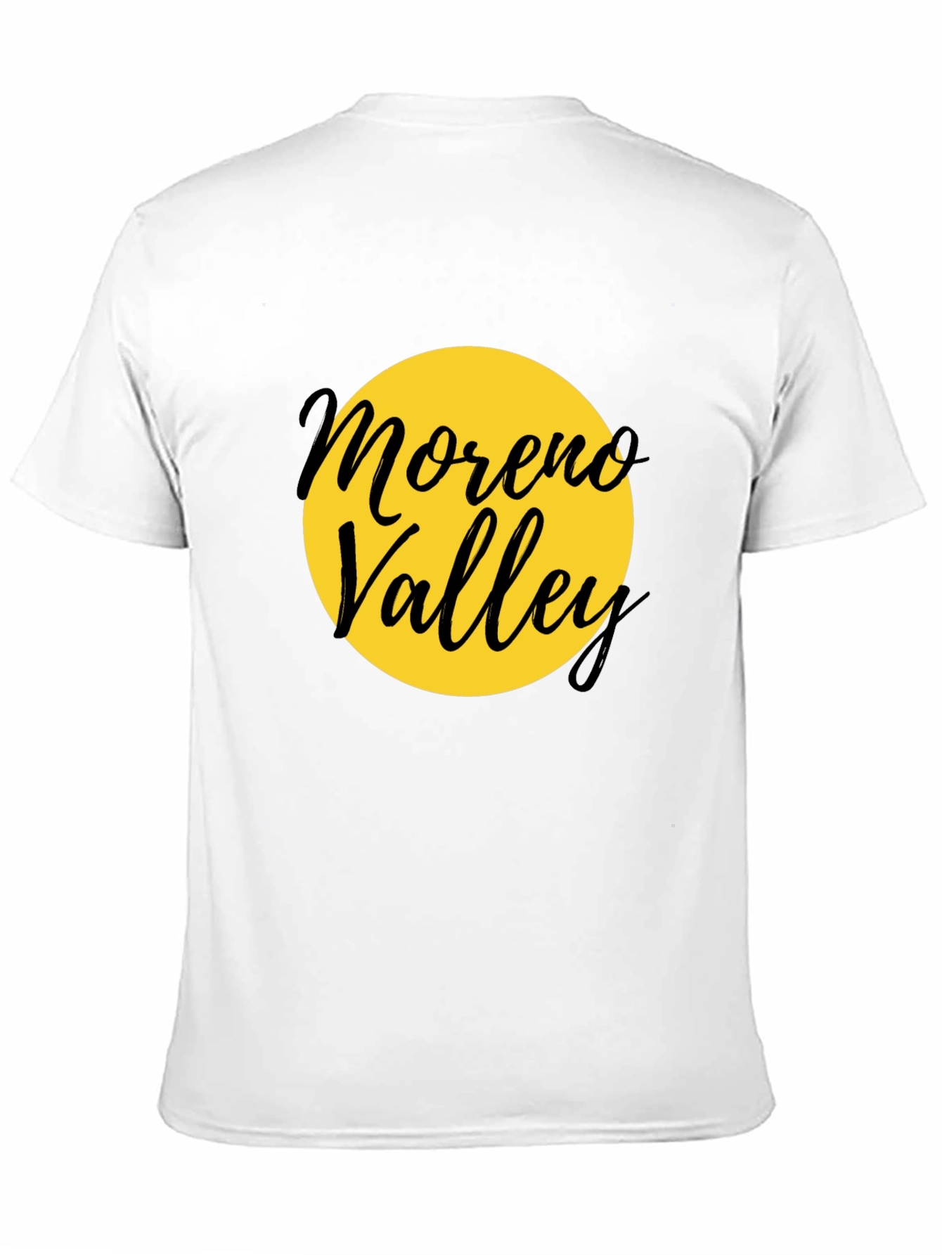 Show off your love for Moreno Valley with this stylish black t-shirt. This comfortable tee features a bold yellow circle graphic with the words 'Moreno Valley' in a cursive font. The classic crew neck and short sleeves offer a relaxed fit, perfect for casual everyday wear. Made from soft, breathable fabric, this t-shirt ensures all-day comfort. Whether you're a local or just a fan, this t-shirt is a great way to represent Moreno Valley in style. Pair it with jeans, shorts, or your favorite bottoms for an easy, laid-back look.