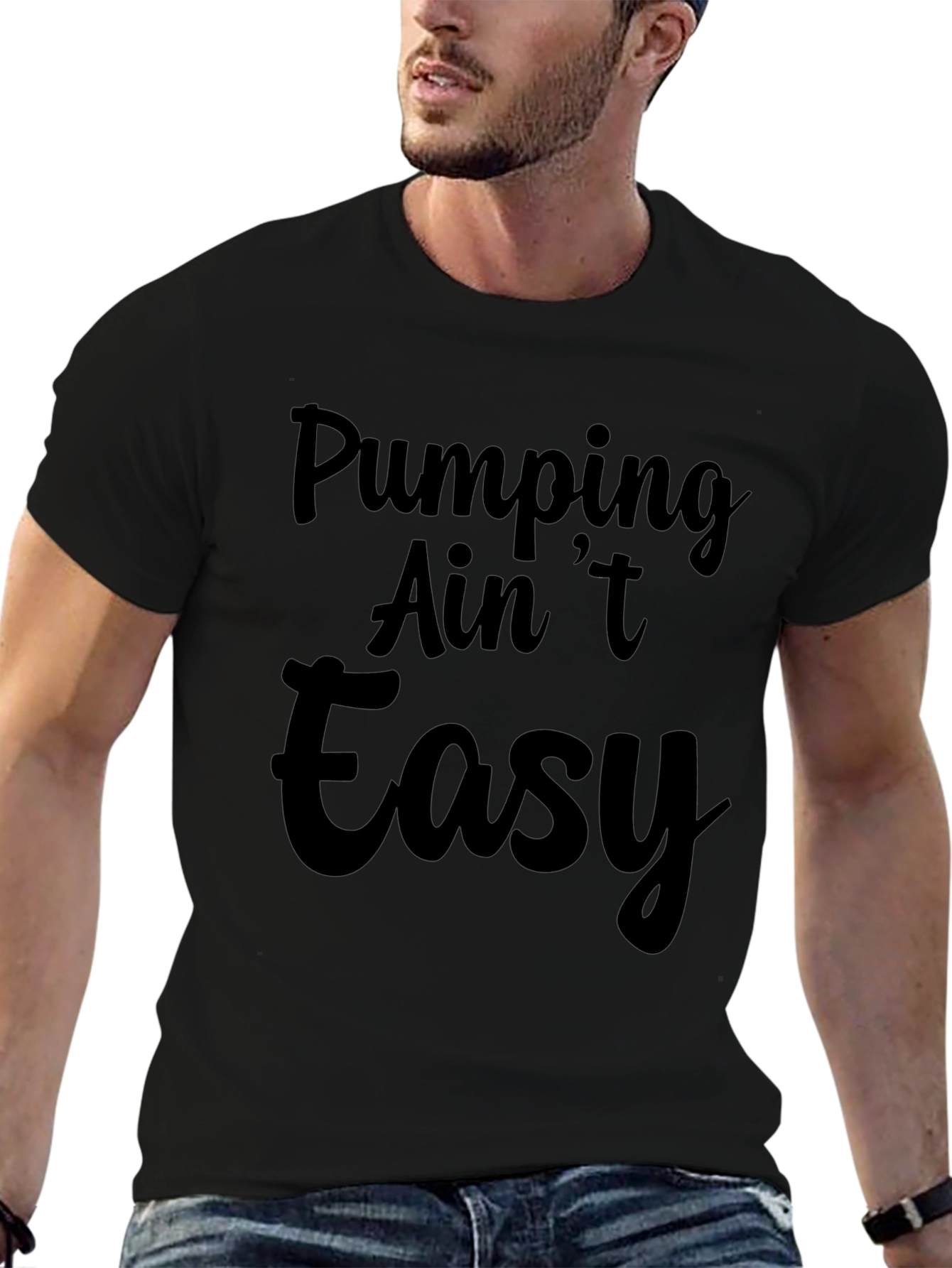 Show off your dedication with this bold black t-shirt. Featuring the statement, "Pumping Ain't Easy" in a stylish font, this tee speaks volumes about commitment. Crafted from soft, comfortable fabric, it's perfect for workouts, casual wear, or making a statement wherever you go. The classic fit ensures all-day comfort, while the durable construction guarantees long-lasting wear. Express your passion with this eye-catching and motivating tee.