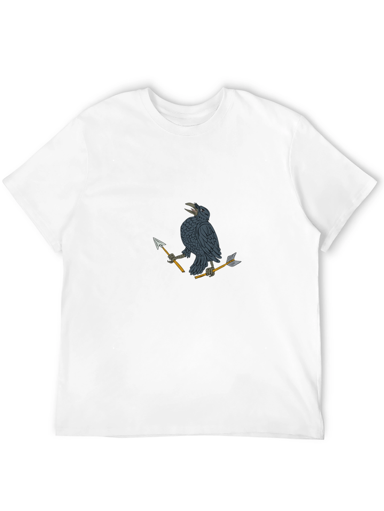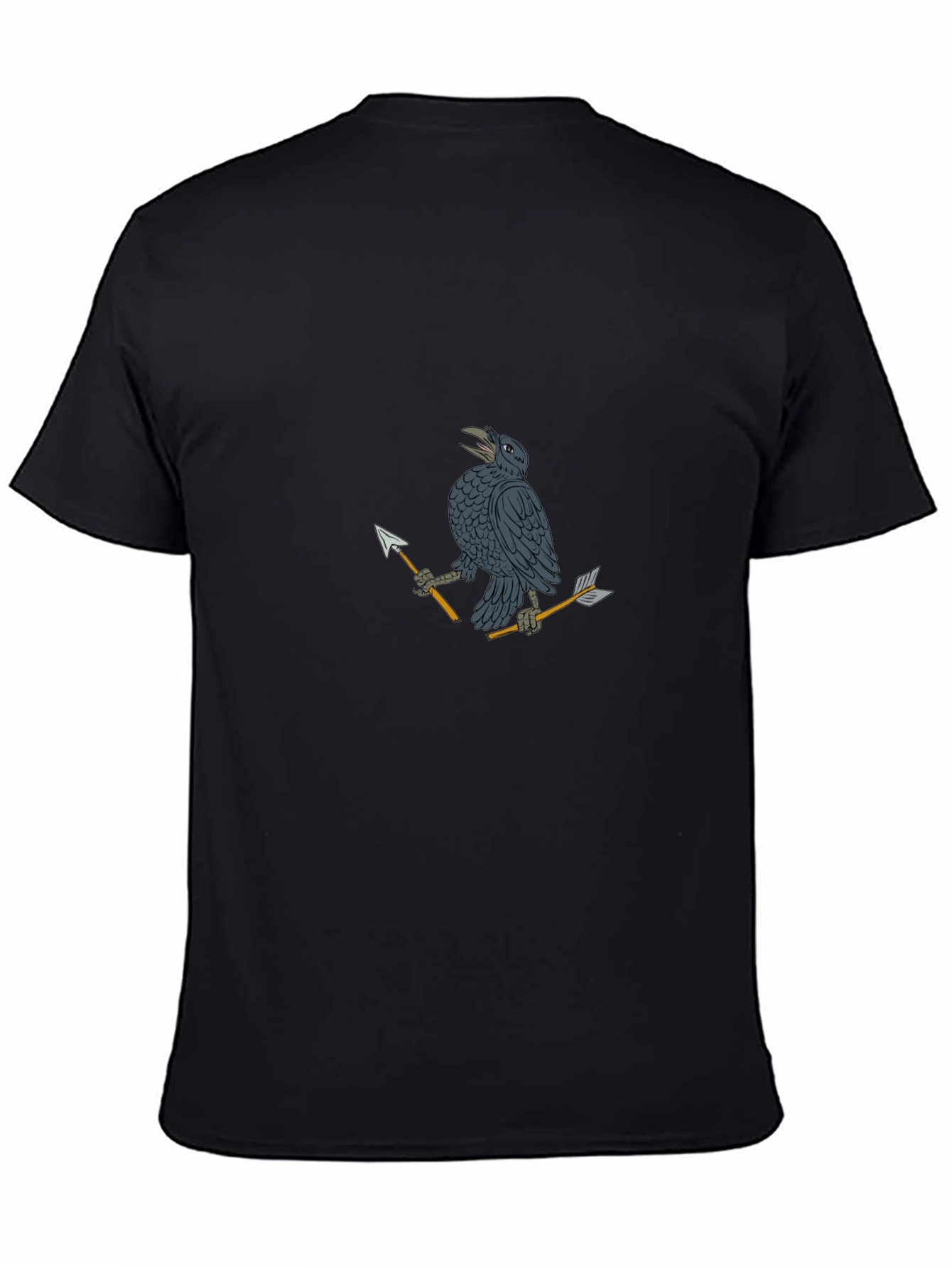 Show off your unique style with this black graphic tee! Featuring a striking raven design holding arrows, this shirt is perfect for making a statement. Crafted from soft, breathable cotton, it offers all-day comfort and durability. The unique artwork adds an edgy and artistic touch to any casual outfit. Ideal for everyday wear, concerts, or hanging out with friends. This tee is sure to become a favorite in your wardrobe. Get yours today!