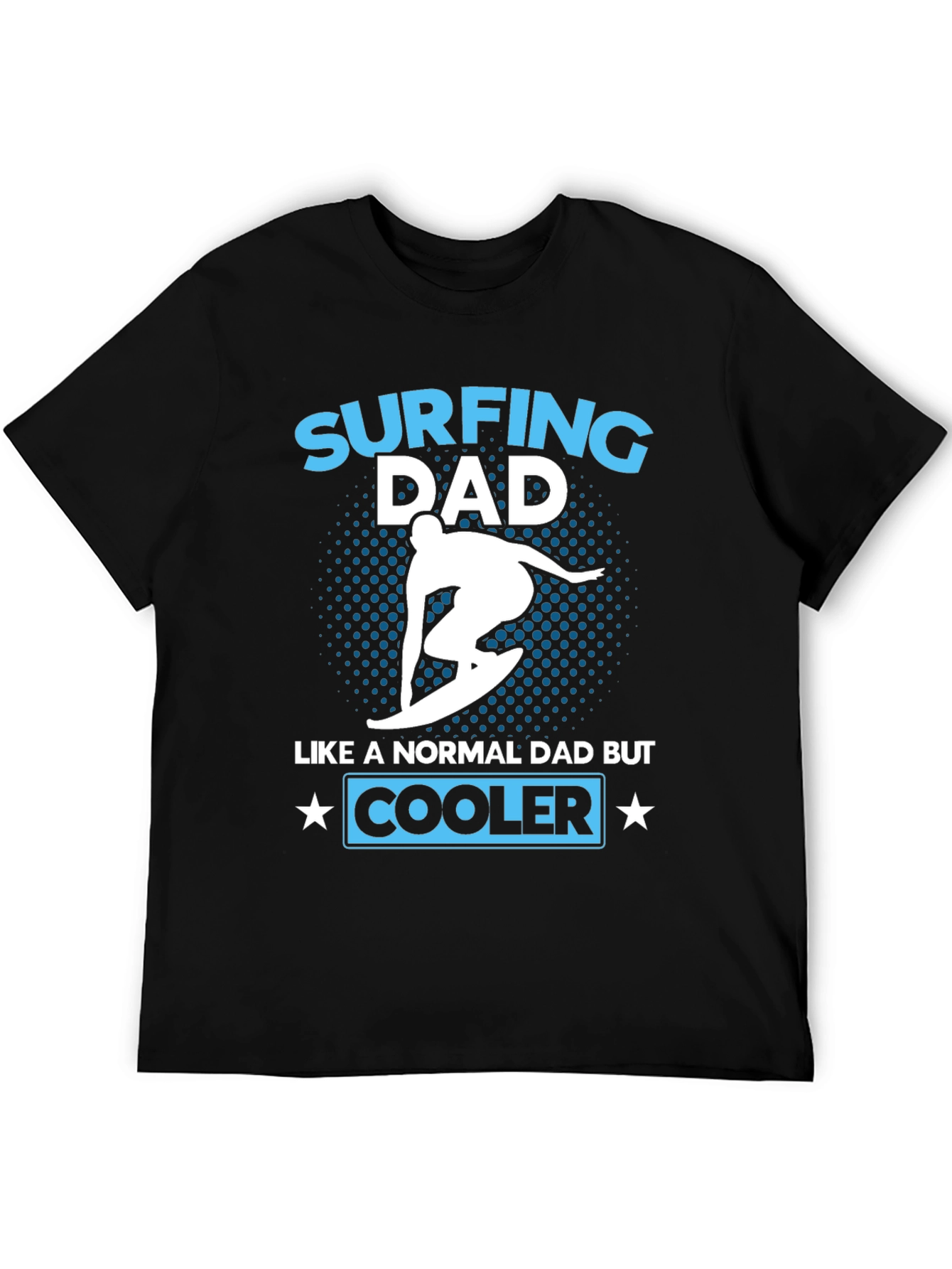 Show off your cool dad vibes with this stylish black t-shirt! Featuring a fun surfing graphic with "Surfing Dad" in a vibrant light blue, this shirt makes a statement. The design includes a surfer silhouette over a dotted background, adding a retro touch. The phrase "Like a normal dad but cooler" adds a playful twist. This comfortable tee is perfect for casual outings, beach trips, or just relaxing at home. Made from a soft, breathable fabric, it ensures all-day comfort. Grab yours now and let everyone know you're a surfing dad who's cooler than the rest!