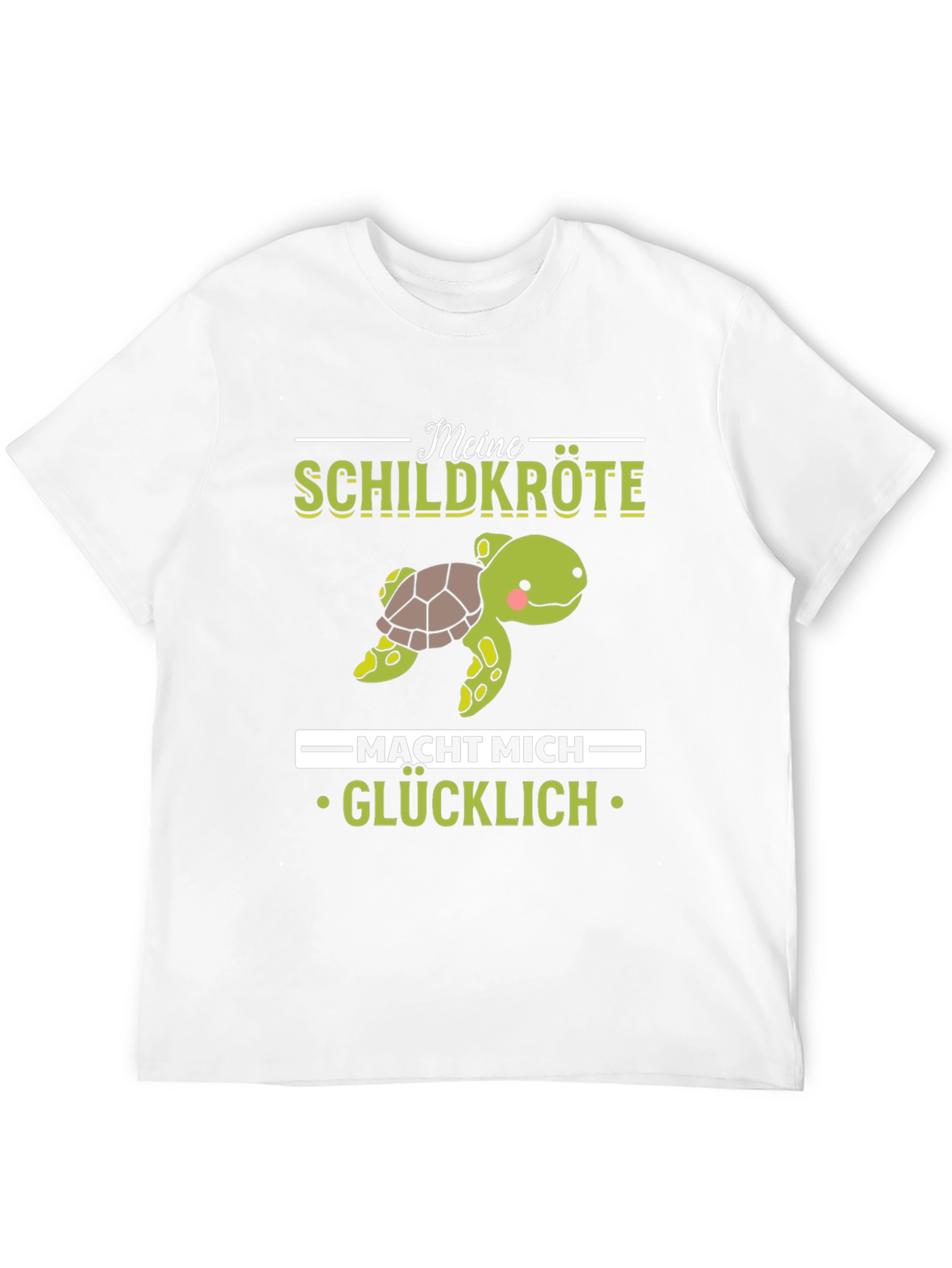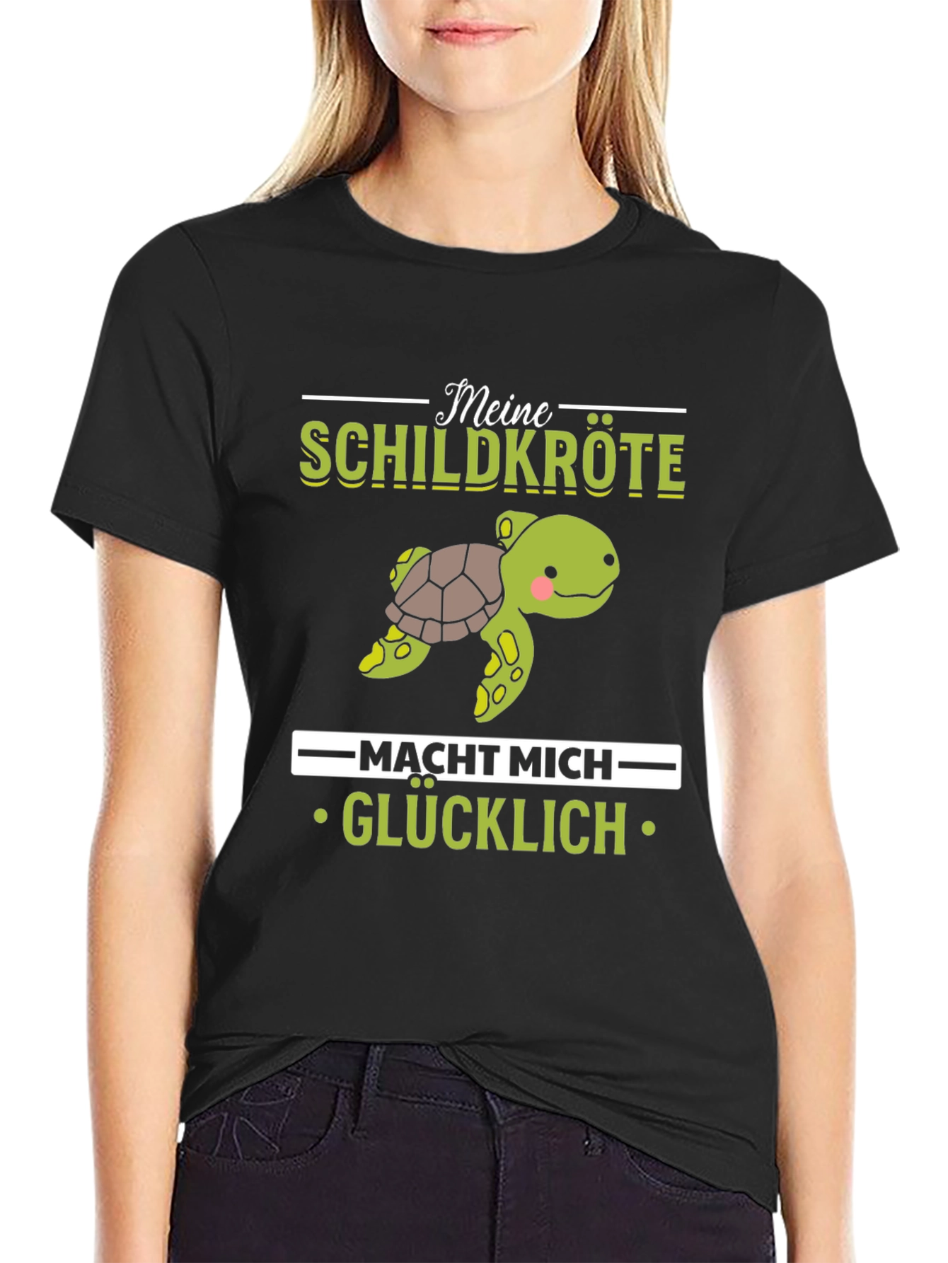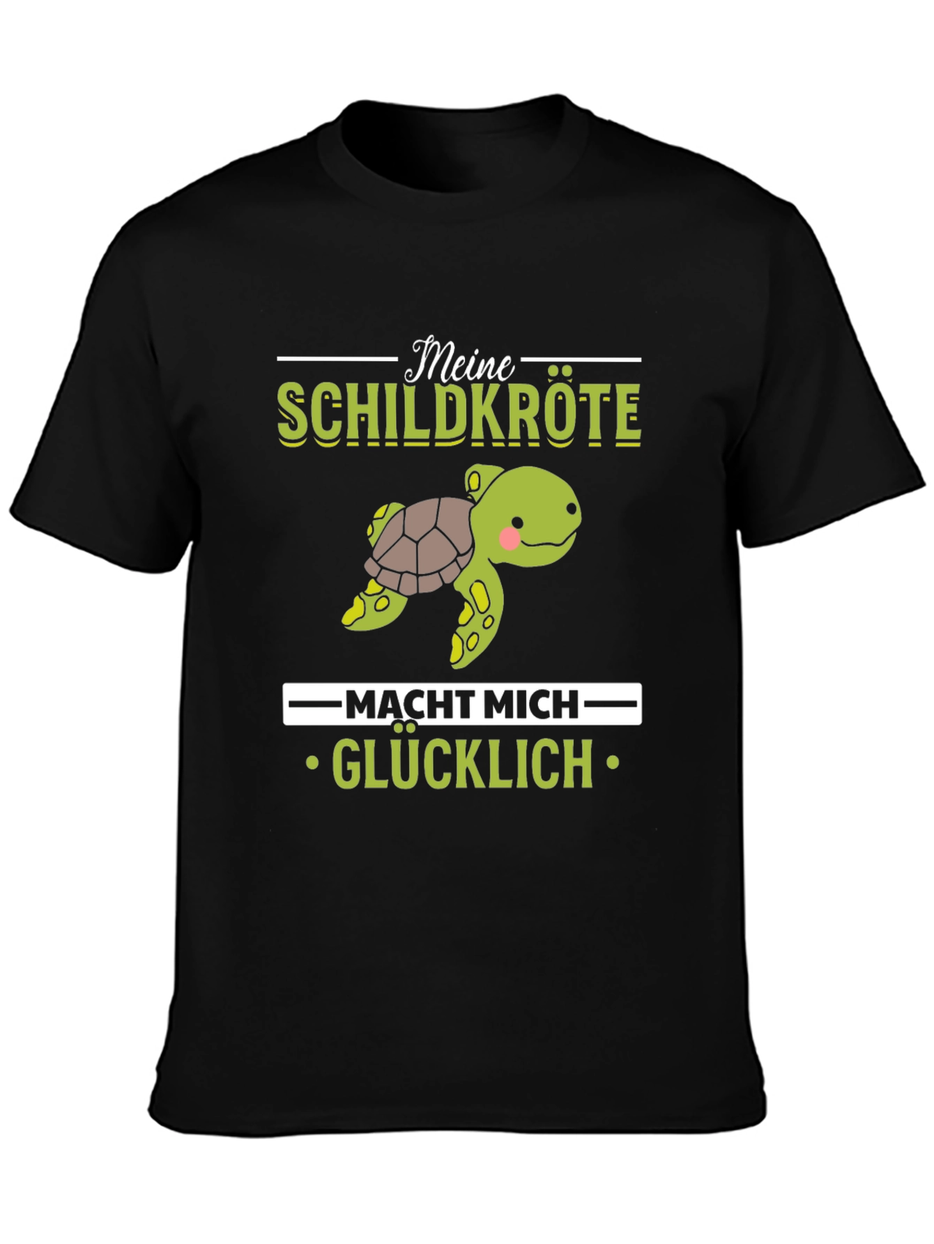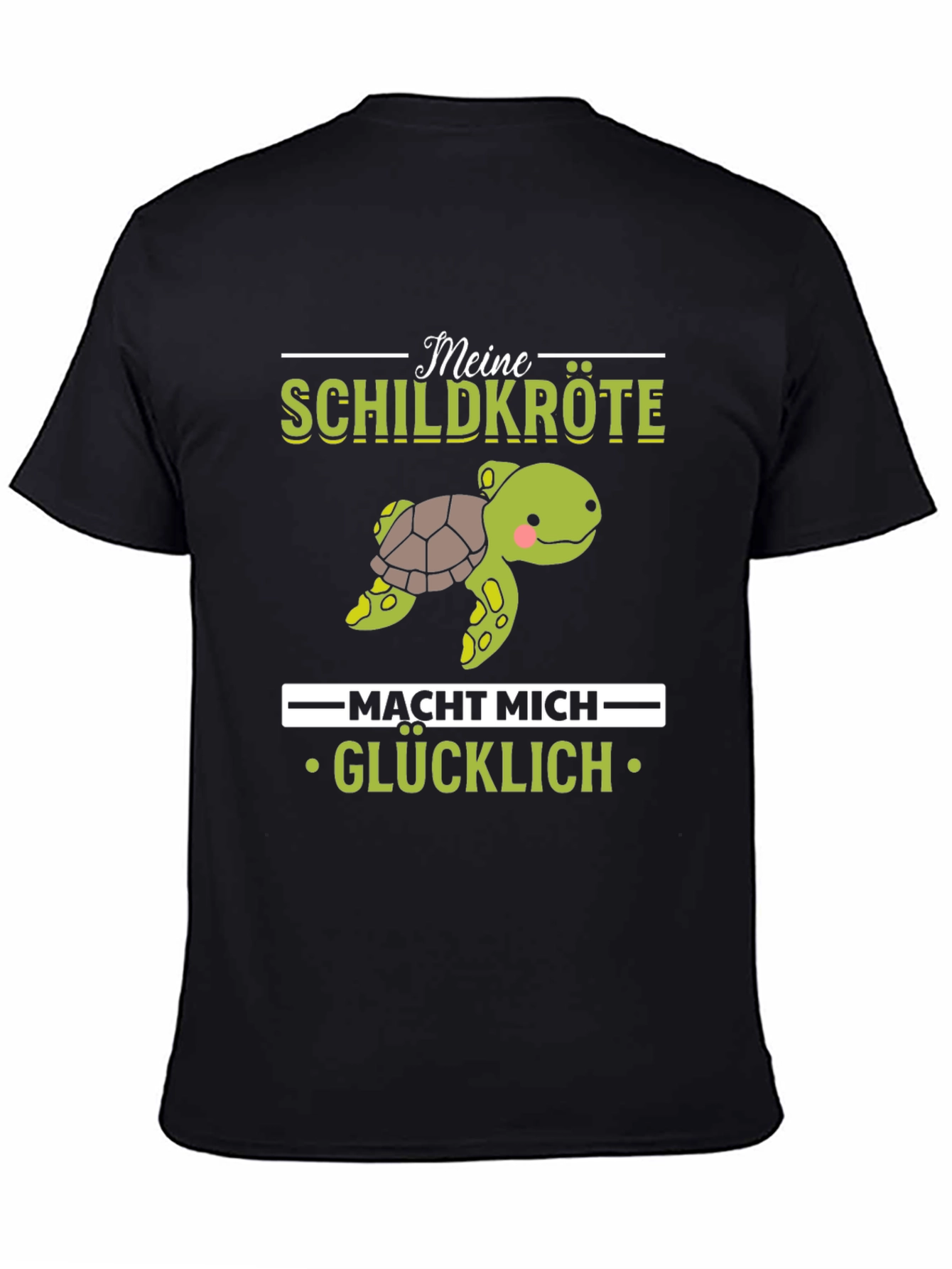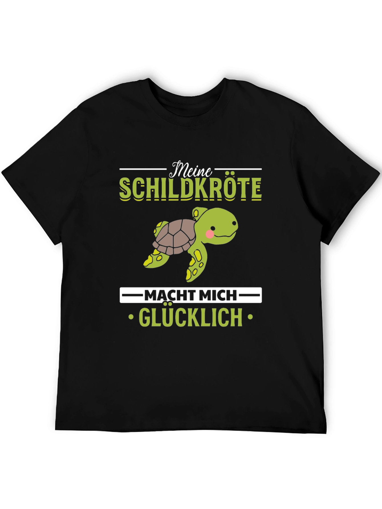 Show your love for turtles with this adorable graphic t-shirt! The shirt features a cute cartoon turtle illustration, accompanied by the text "Meine Schildkröte macht mich glücklich" which translates to "My turtle makes me happy". Made from a soft, comfortable fabric, this t-shirt is perfect for casual wear. The design is printed on a classic black tee, making the graphic pop. Wear it to the zoo, aquarium, or simply while relaxing at home. It's a great conversation starter and a fun way to express your passion for turtles. Get yours today and spread the turtle love!