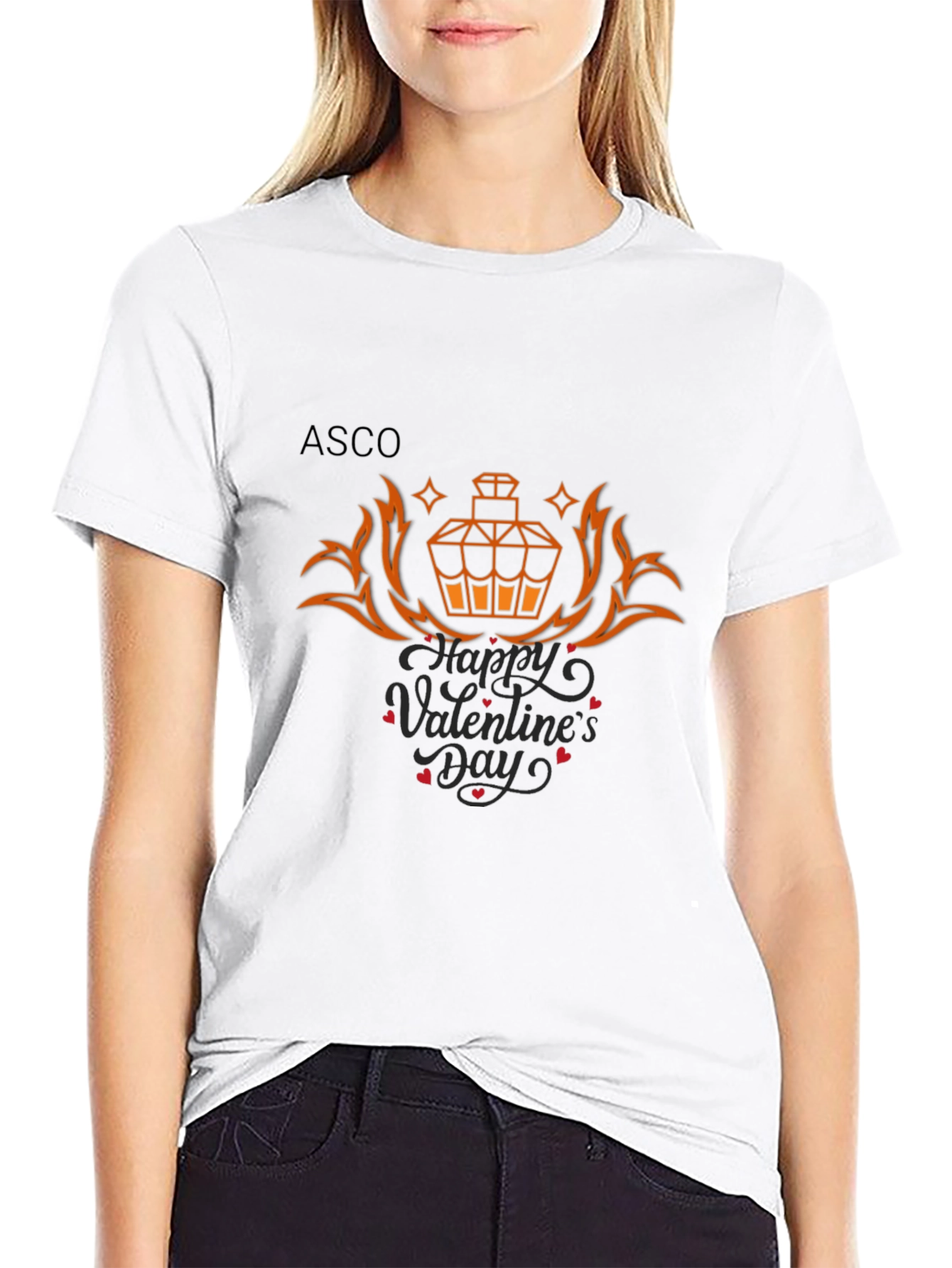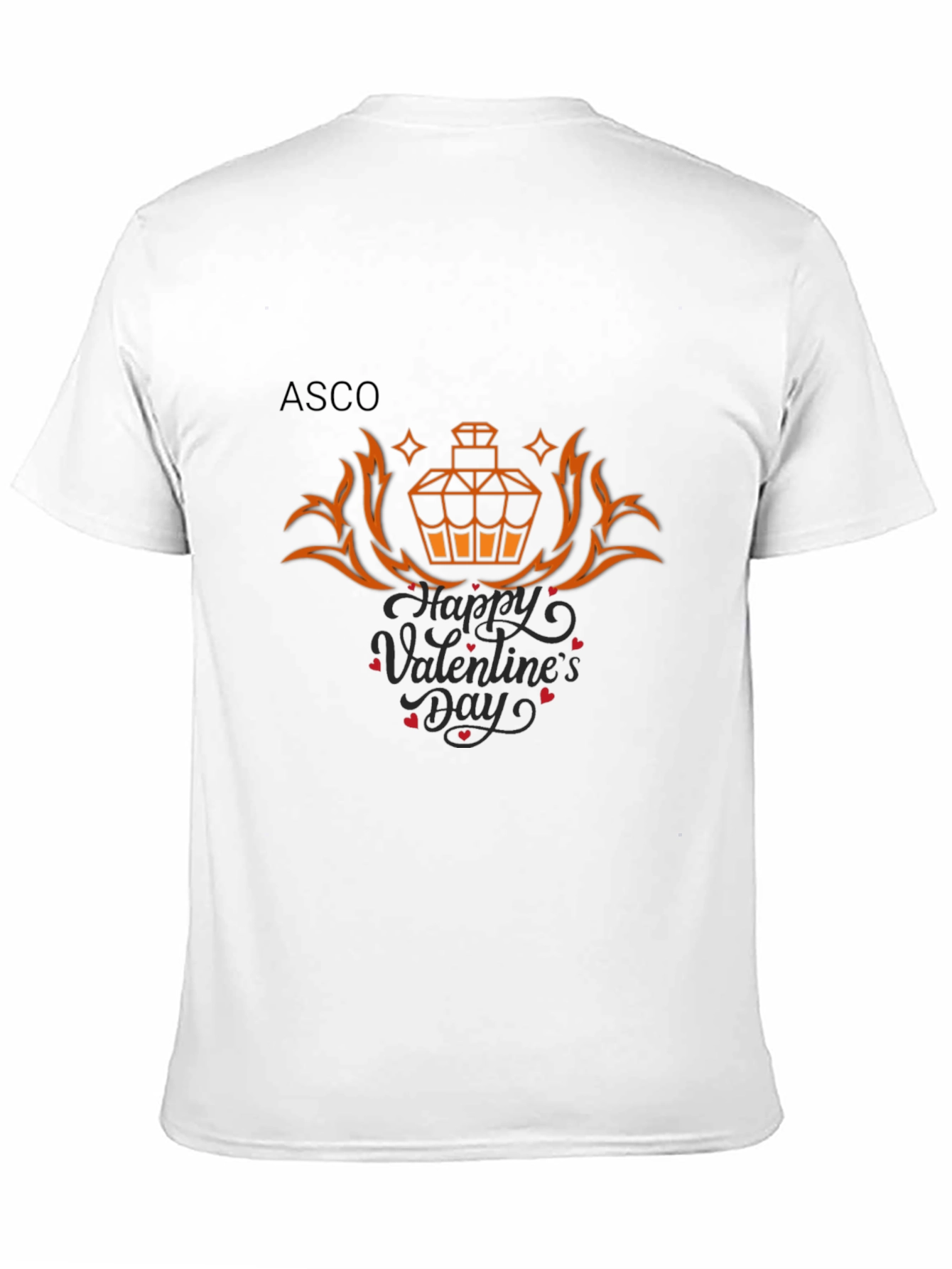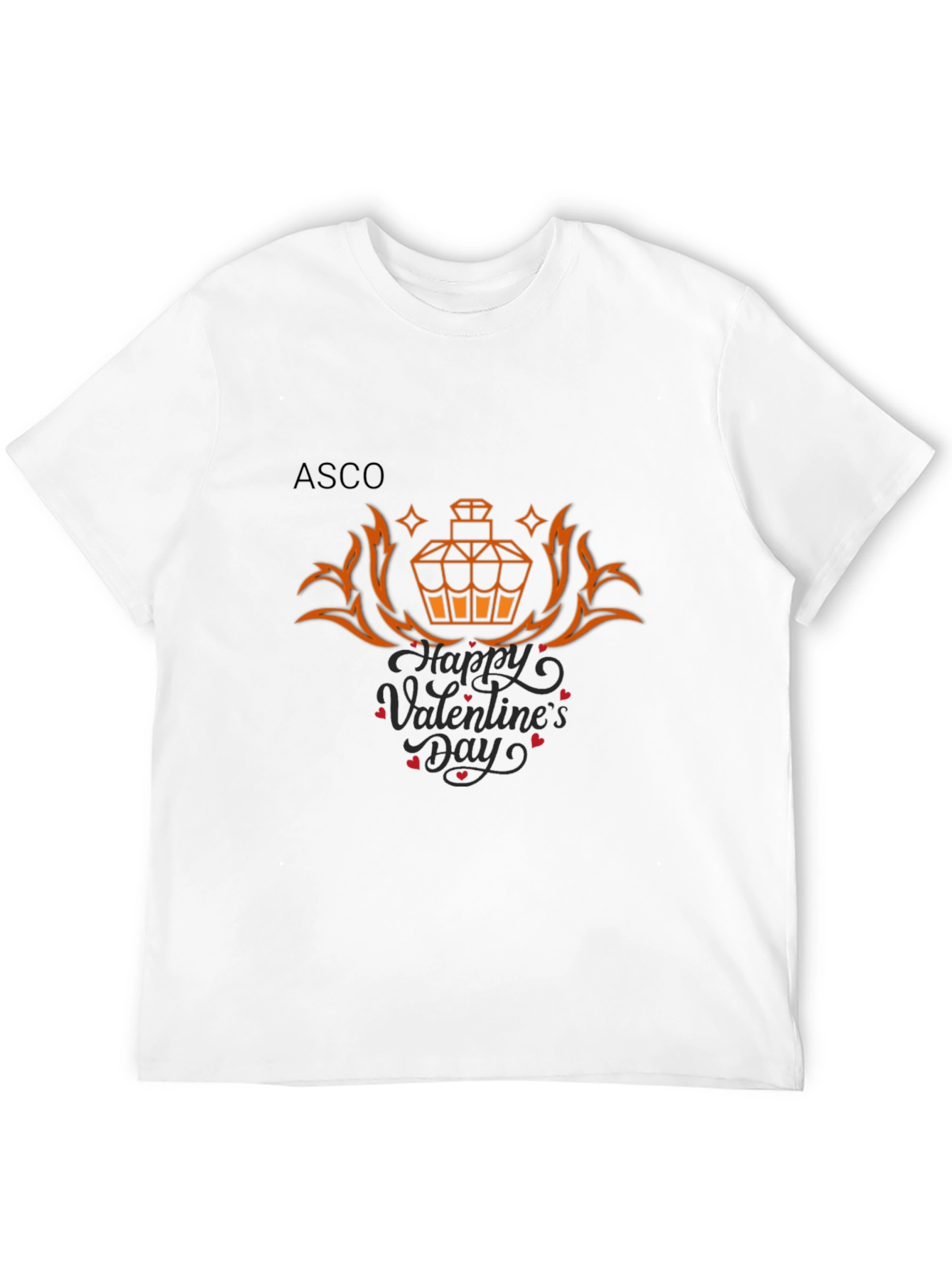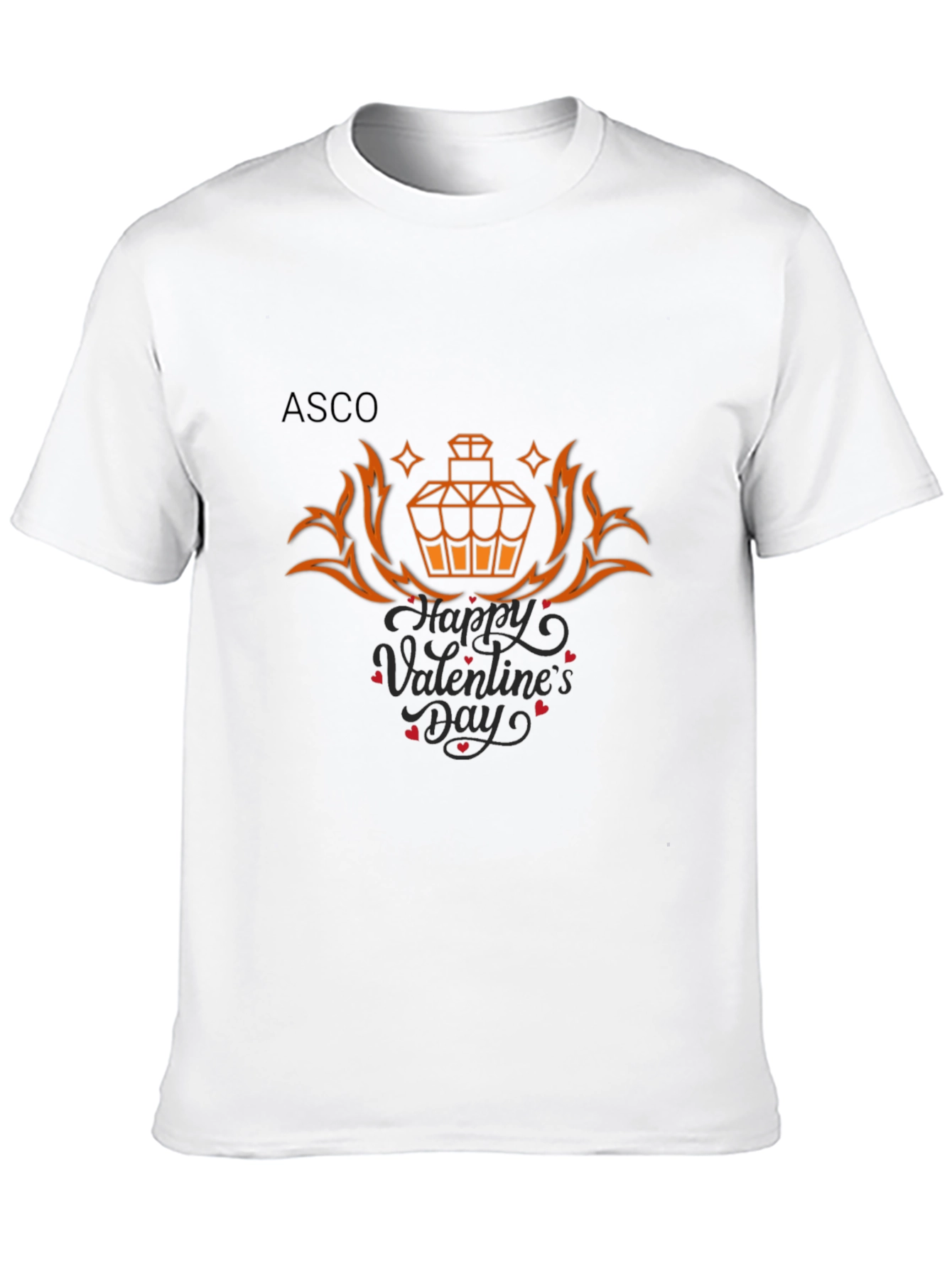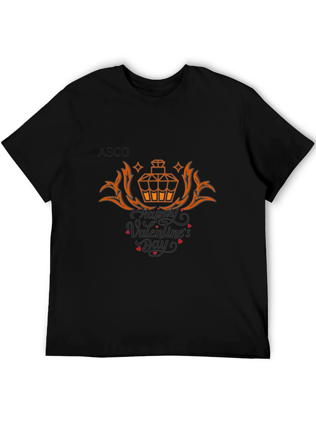 Celebrate Valentine's Day in style with this unique black T-shirt. Featuring a creative perfume bottle design intertwined with elegant floral elements and 'Happy Valentine's Day' script, accented by cute little hearts. This shirt perfectly balances festive charm with a sophisticated edge. Crafted from a soft-looking material, this tee provides a comfortable fit for all-day wear. Pair it with jeans or your favorite bottoms for a casual yet celebratory look. Ideal for Valentine's Day parties, date nights, or simply spreading the love. Express your romantic side with this eye-catching design.
